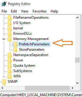 - Follow the path to find the Prefetch: HKEY_LOCAL_MACHINE / SYSTEM / CurrentControlSet / Control / Session Manager / Memory Management / PrefetchParameters
